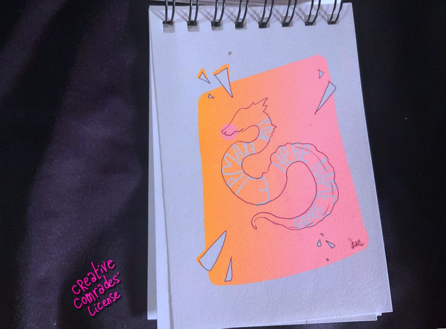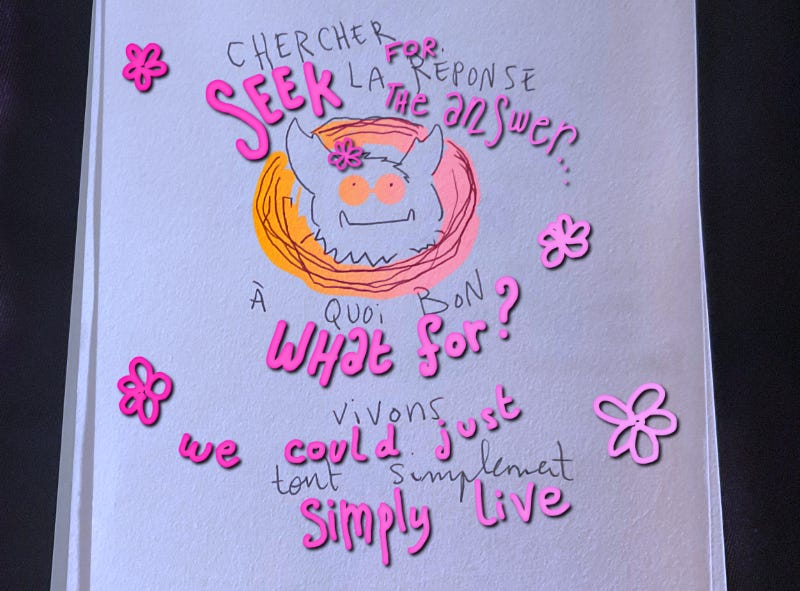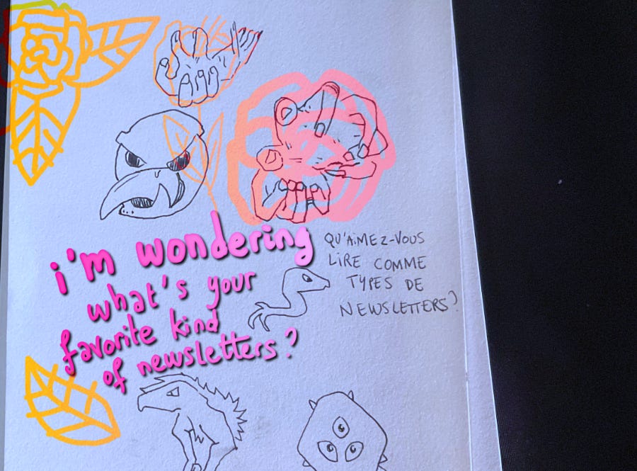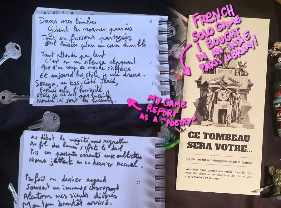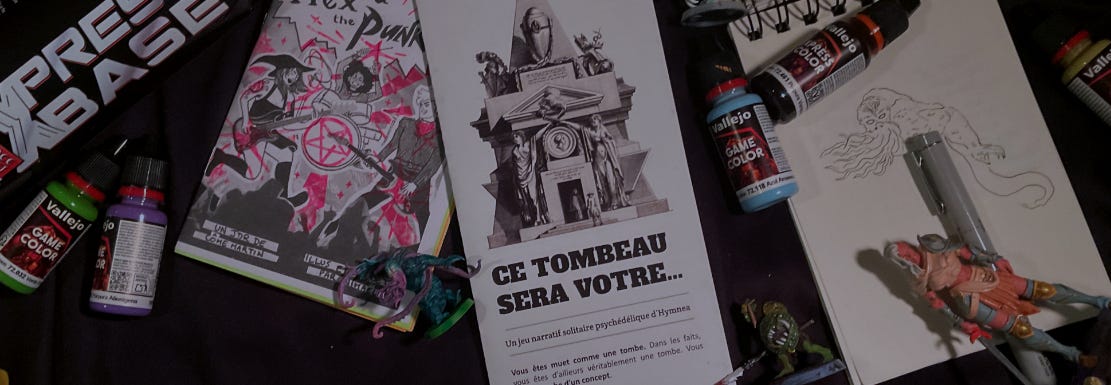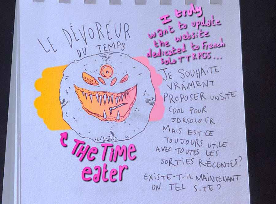 EN: Hi, back again on this great february fourth day (Writen 04/02 according to european style eheh. The Great Answer #42). My hand-writen hand-drawn newsletter is back. Of course it’s pretty random but there’s a solo ttrpg game includes (French only game this time). PS i read comments below, if you want to join me! PS2: everything there is under creative comrades agreement, and you can ask for better files if you want some drawings or whatever!